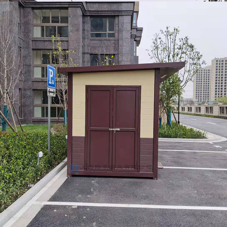產品編號:垃圾房C-60 規格尺寸:2.5*6*3.0米(可定制各種規格) 制作工藝:鋼結構龍骨 內外墻板:金屬雕花板